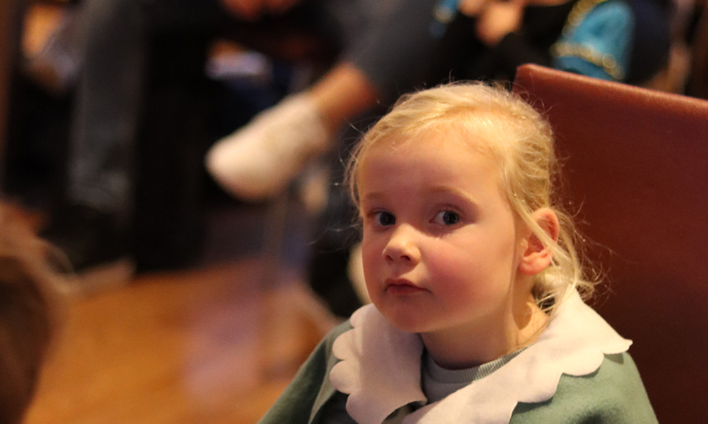 Tot grote tevredenheid van Sinterklaas zong iedereen uit volle borst mee. Nadat het liedje was afgelopen nam Sinterklaas plaats op zijn speciale stoel en één voor één mochten de kinderen bij hem komen. Het grote boek werd opengeslagen en Sinterklaas wist over alle kinderen iets te vertellen. Ieder kind ontving een mooi cadeau.