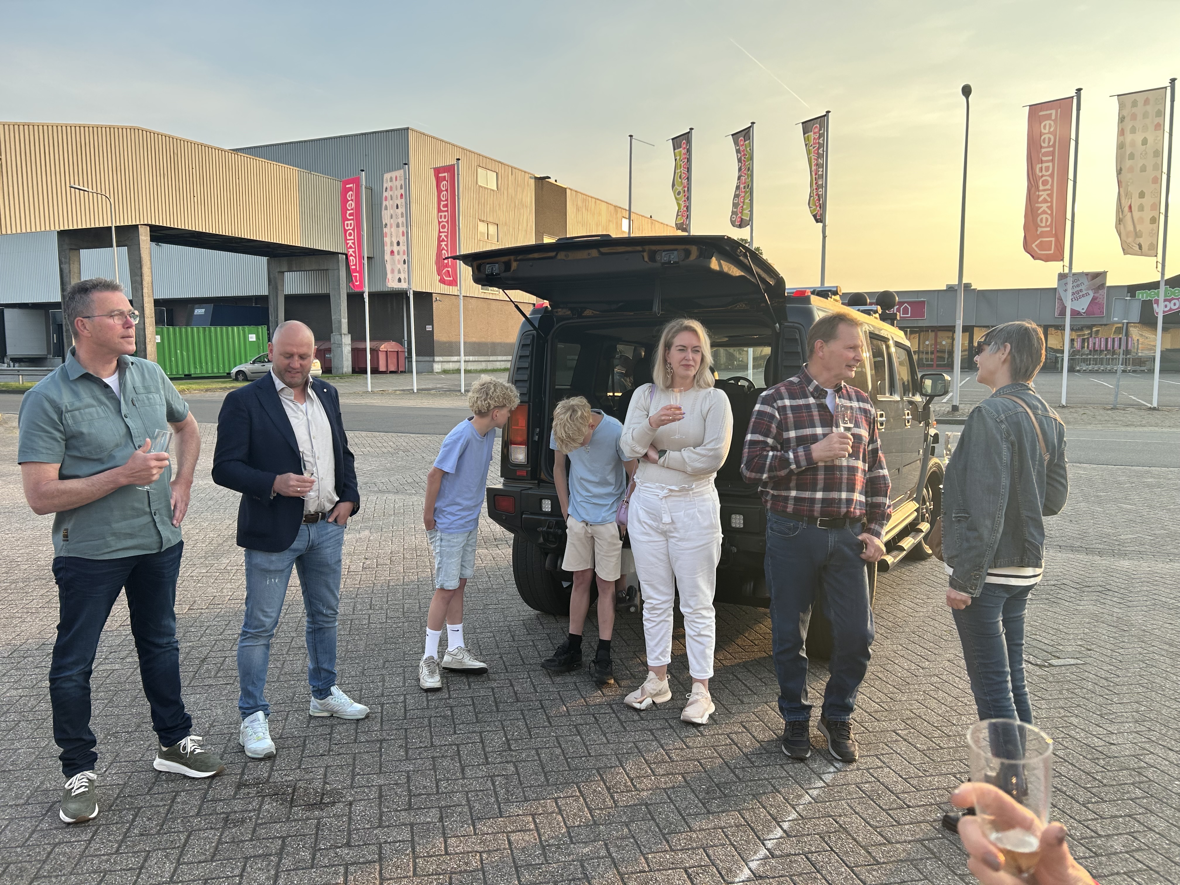 De jubilarissen werden samen met hun naaste familie met een speciale auto van huis opgehaald. Op een parkeerplaats op het industrieterrein in Oldenzaal, kwamen ze rond 20.00 uur bij elkaar. Daar ter plaatse zijn er verschillende foto's gemaakt en is er al even
