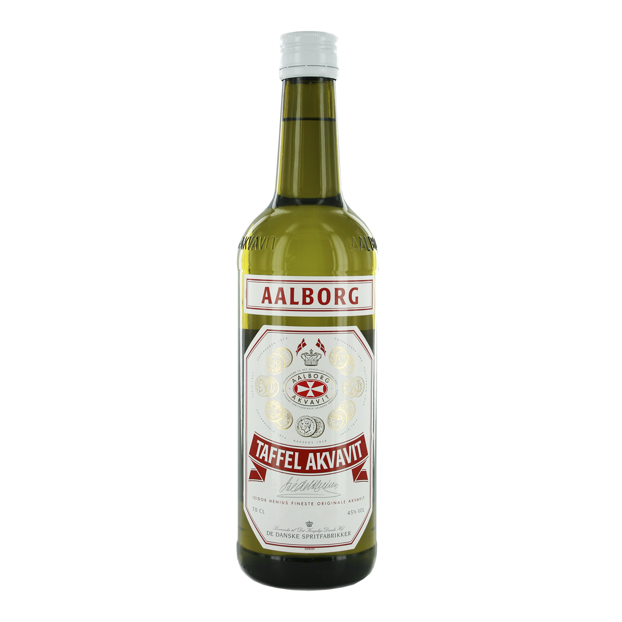 Aalborg Taffel Akvavit is het archetype van een heldere, Deense aquavit. Traditioneel wordt het geserveerd bij een stuk gemarineerde haring, geserveerd met uien. Maar het is ook heerlijk met bijvoorbeeld met een stuk gekruide worst of geroosterd varkensvlees in zuur.