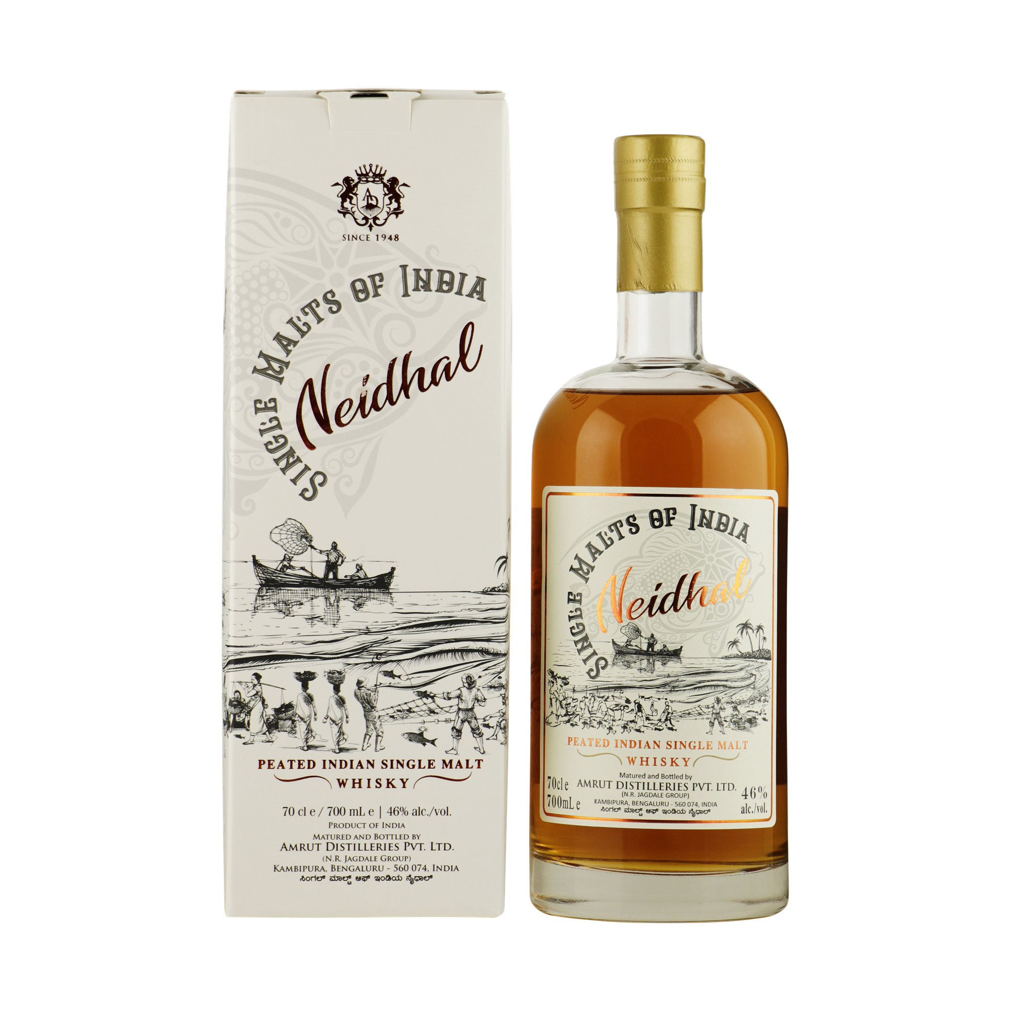 Oude Tamil-teksten, die dateren uit de Sangam-periode (600 v.Chr. – 300 n.Chr.), classificeren moeder aarde in vijf regio’s. Volgens deze classificatie omvat “Neidhal” alle oceanen en aangrenzende kustvlakten. De Amrut Neidhal whisky is een peated single malt afkomstig uit de Indische “Neidhal” oftewel het kustgebied van Indië. De whisky vertoont hierdoor kenmerken die uniek uit de kuststreken voortkomen: tonen van tropisch fruit, vanille, zachte fenolen en het typerende zeezout. Met deze whisky wil Amrut de verborgen schoonheid van Indië op de kaart zetten.