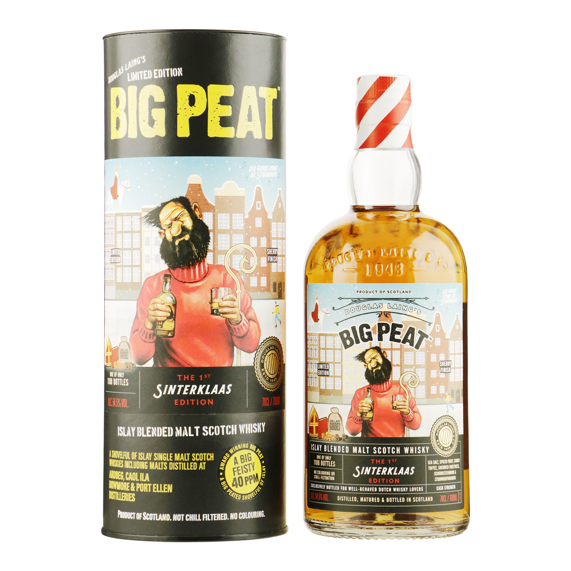 Terwijl de stoomboot in Spanje nog van een nieuw laagje verf wordt voorzien, staat Big Peat al in de startblokken voor het sinterklaasseizoen. Speciaal voor Nederland brengt onze stoere visser van Islay een feestelijke limited edition uit: The Sinterklaas Edition Sherry Finish. Een botteling die de kenmerkende rokerigheid combineert met de warme, zoete tonen van sherryvaten.