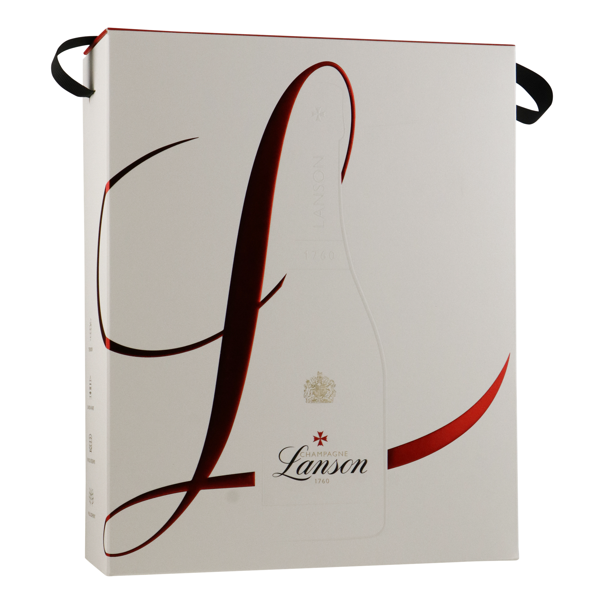 Een prachtige geschenkverpakking met het vlaggenschip van Lanson, Le Black Création, met 2 luxe champagneglazen.