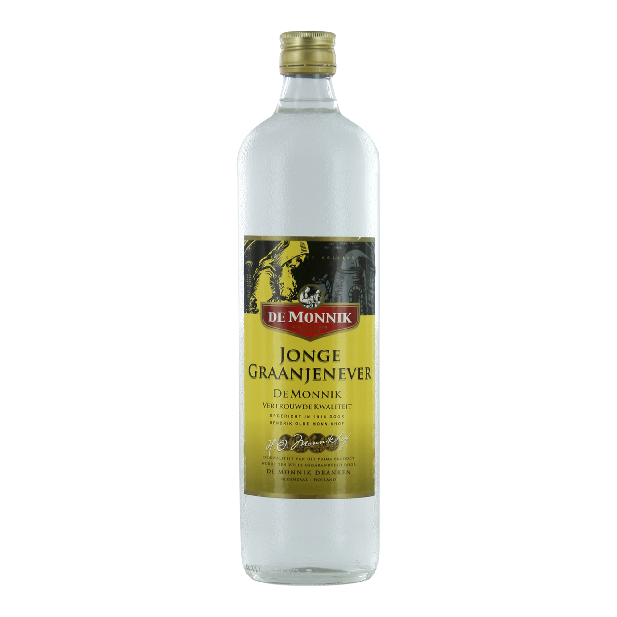 DE MONNIK jonge graanjenever/ lange ijzige fles 1,0 ltr.