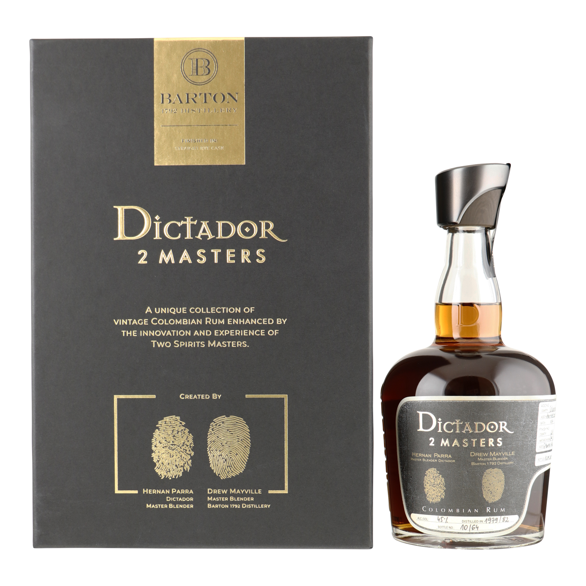 Het 2 Masters programma is een baanbrekend rum project van Dictador in samenwerking met vooraanstaande wijn- en spiritshuizen van over de hele wereld. Elk van deze masters zijn zelf uitgekozen door Parra, waarna ze in hun eigen domein speciaal geselecteerde en decennia oude (36YO - 44YO) Colombiaanse rum vaten ontvangen. Hier zetten ze het unieke rijpingsproces voort, in een andere vat, een andere kelder, op een ander continent en onder het oog van een andere Master.