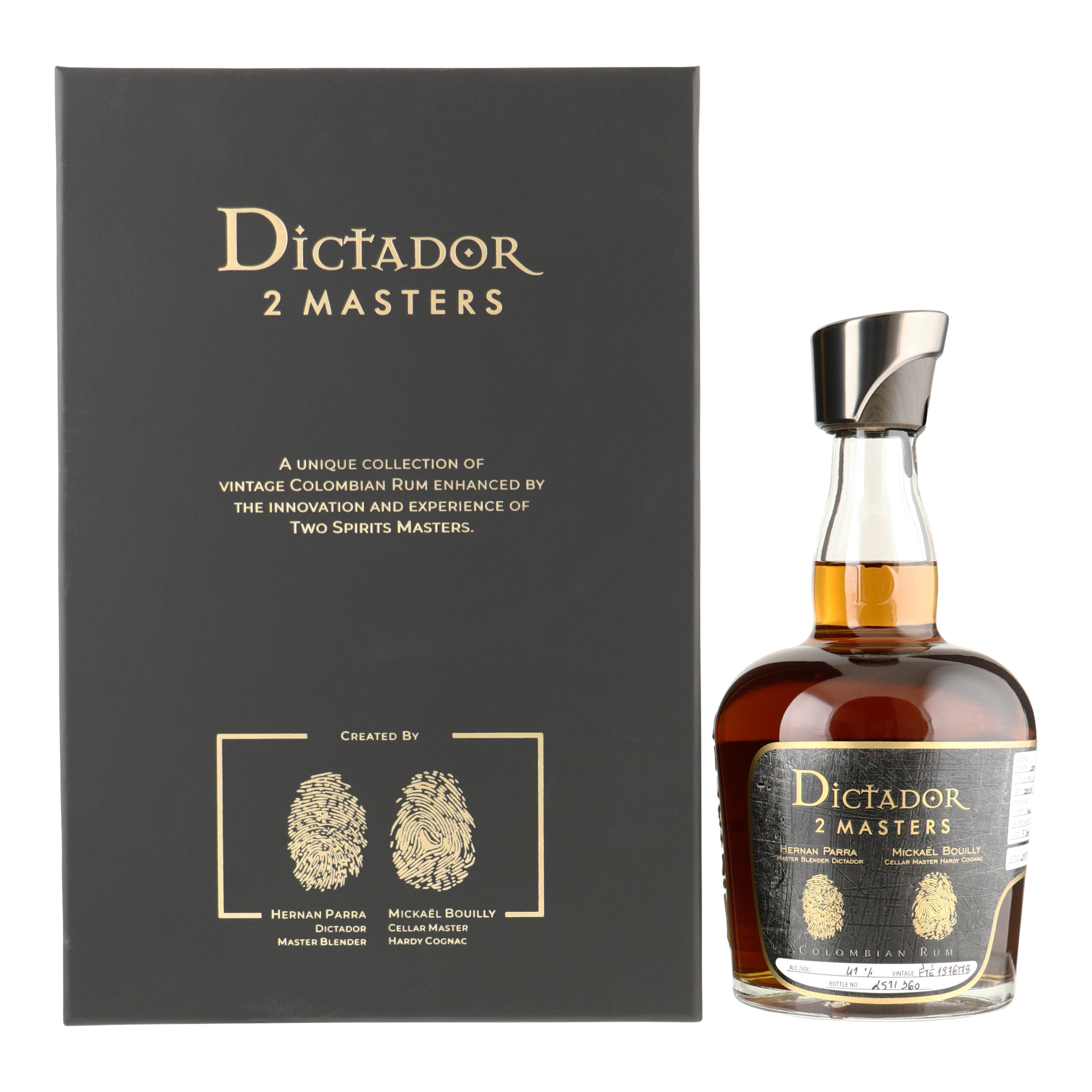 Het 2 Masters programma is een baanbrekend rum project van Dictador in samenwerking met vooraanstaande wijn- en spiritshuizen van over de hele wereld. Elk van deze masters zijn zelf uitgekozen door Parra, waarna ze in hun eigen domein speciaal geselecteerde en decennia oude (36YO - 44YO) Colombiaanse rum vaten ontvangen. Hier zetten ze het unieke rijpingsproces voort, in een andere vat, een andere kelder, op een ander continent en onder het oog van een andere Master.