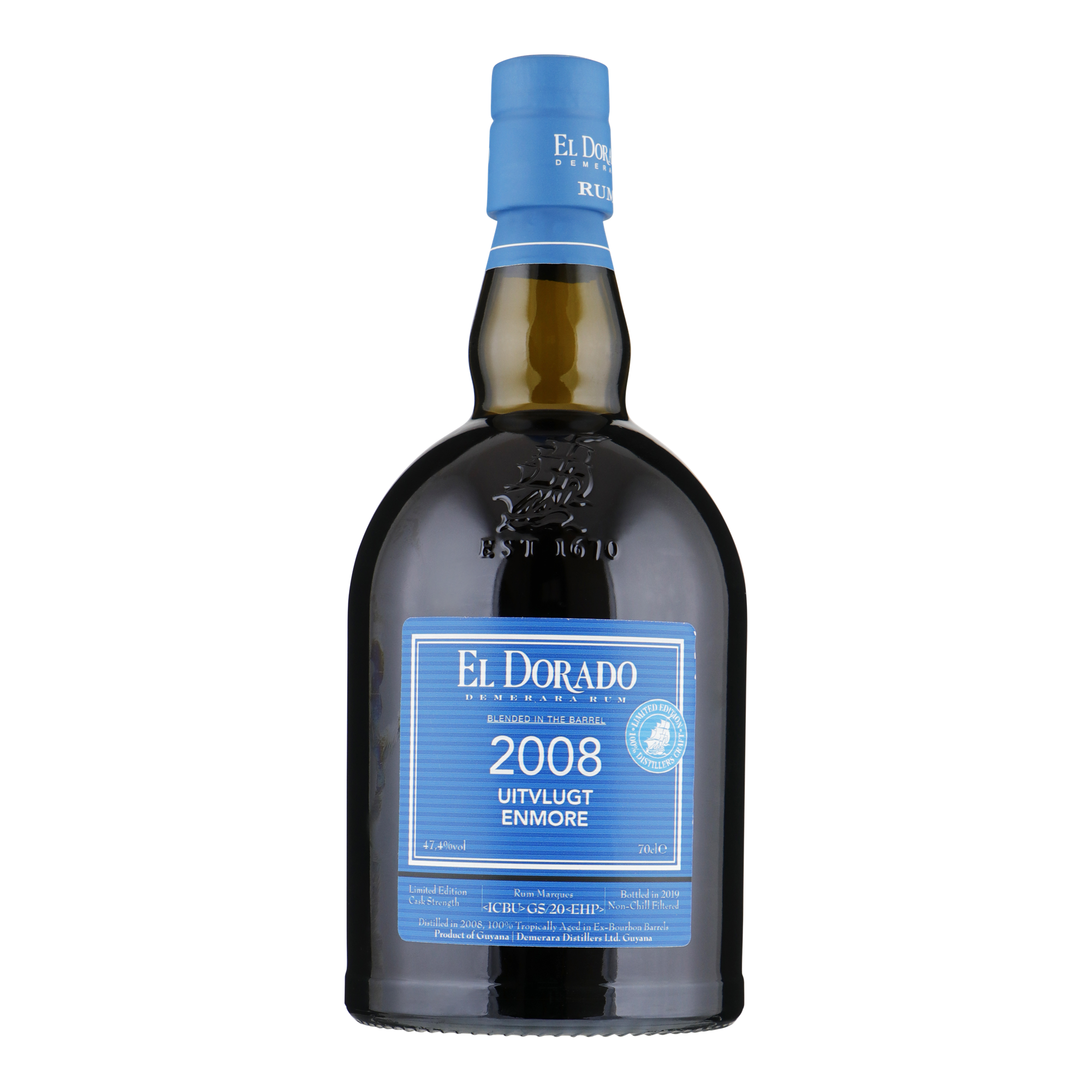 Voor de El Dorado Uitvlugt Enmore 2008 heeft Demerara Distillers Ltd. in 2008 Rum Marques van de Uitvlugt Continuous Savalle Still en de Enmore Wooden Continuous Coffey Still geselecteerd. De Marques ICBU, GS/20 en EHP zijn geblend in het vat direct na de distillatie. Hierna heeft deze rum 11 jaar in ex-bourbon vaten gerijpt onder tropische omstandigheden in Guyana, met als resultaat een prachtig gebalanceerde rum.