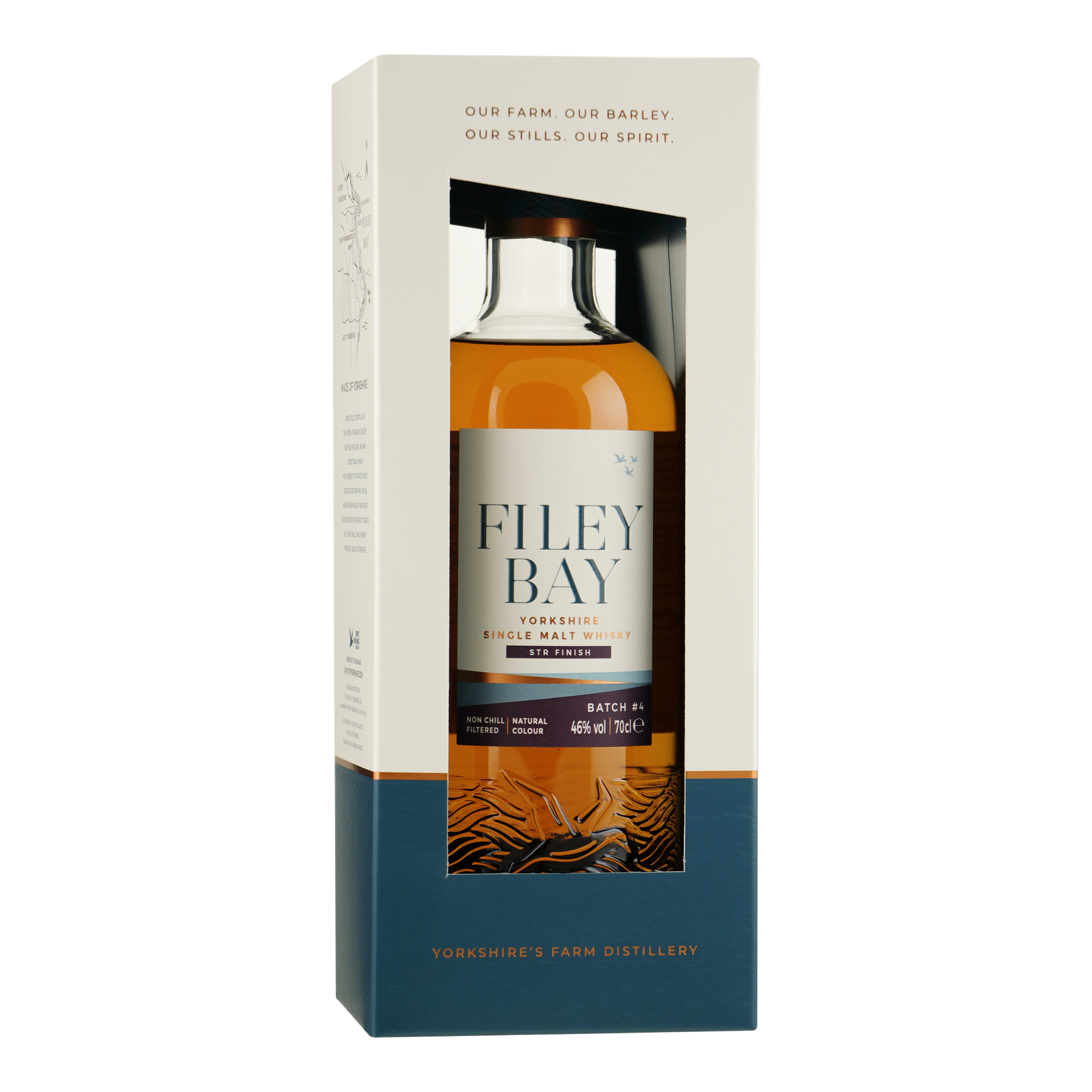 In 2023 behaalde Filey Bay STR Finish platina op de Las Vegas Global Spirit Awards, goud op de New York World Wine and Spirits Competition, en goud bij de UK Spirits Master Awards. Een resultaat waar iedereen binnen Filey Bay bijzonder trots op is. De whisky heeft een lange rijpingsperiode ondergaan in zowel ex-bourbonvaten als 'Shaved, Toasted en Re-charred rode wijnvaten', beter bekend als STR-vaten. Het resultaat is een whisky met veel rood fruit en een grote diepgang, zonder daarbij de karakteristieken van de distilleerderij uit het oog te verliezen.