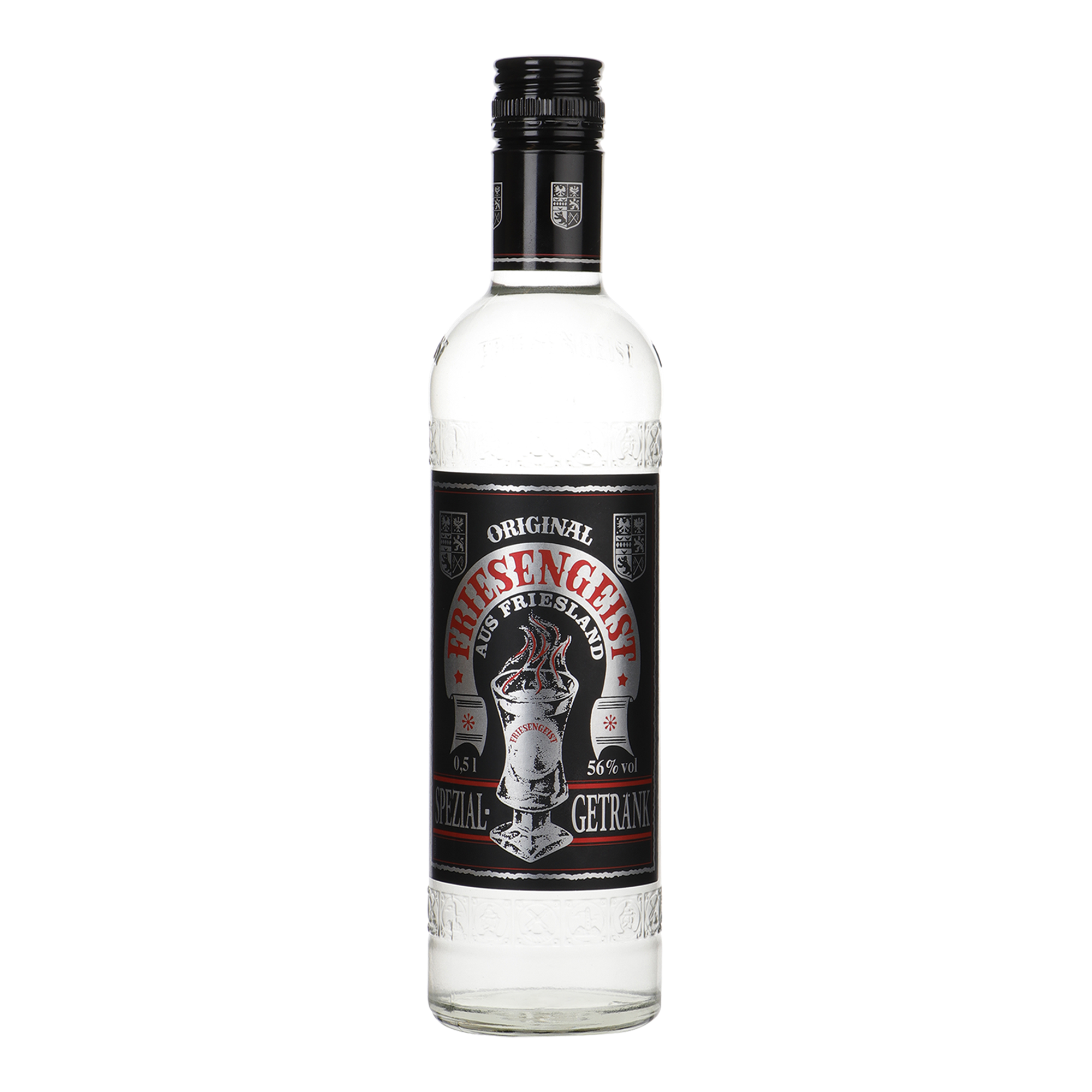 Friesengeist is een typische Ostfriesche delicatesse die brandend wordt geserveerd. Na ongeveer 1 minuut wordt het vuur gedoofd met de traditionele pan en kan het uit het warme glas gedronken worden. De in houten vaten bewaarde kornbrand, krijgt haar aromatische smaak door toevoeging van fruit en kruidenextracten, dit alles volgens oud, Ostfriesch recept. Lekker na het diner of als tussendoortje !