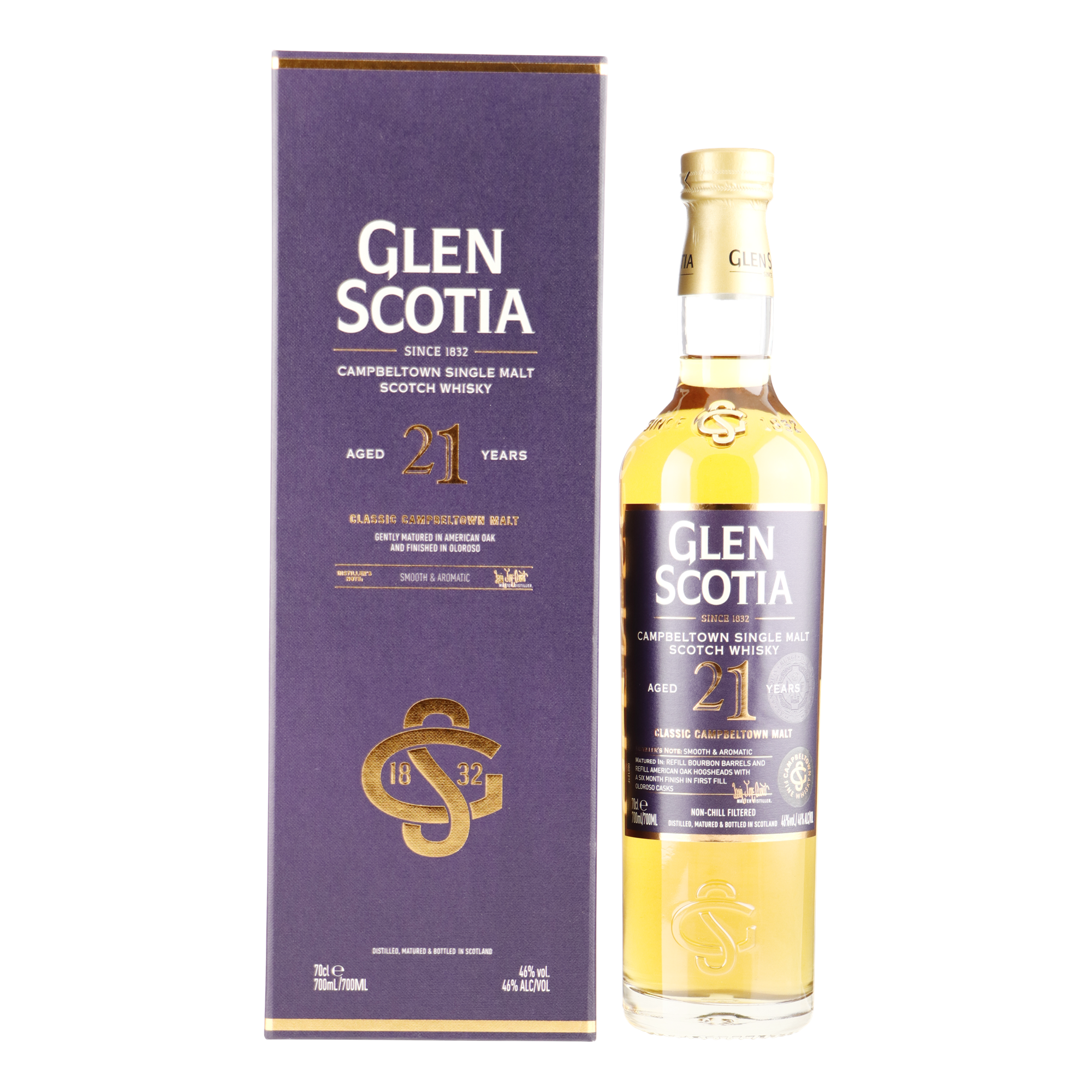 In de beginjaren heeft de inmiddels 21 jaar oude whisky gelegen op een vaten combinatie van ex-bourbon en Amerikaanse eik. De laatste periode heeft de whisky op een Oloroso sherry vat gelegen gedurende een periode van 6 maanden. Naast tonen van sherry, heeft de whisky hiermee tinten van gedroogd fruit gekregen. Dit zorgt voor een extra stukje finesse die doorvloeit in alle aroma’s die de whisky rijk is. Daarnaast blijven de karakteristieke kenmerken van Glen Scotia terugkomen waar ze bekend om staan. Zoals intense fruitigheid, zoete rozijnen en invloeden van Atlantische zeelucht. De 21-jarige Glen Scotia is een uitzonderlijke single malt die het ware karakter van een verfijnde en klassieke Campbeltown-whisky vertegenwoordigt.