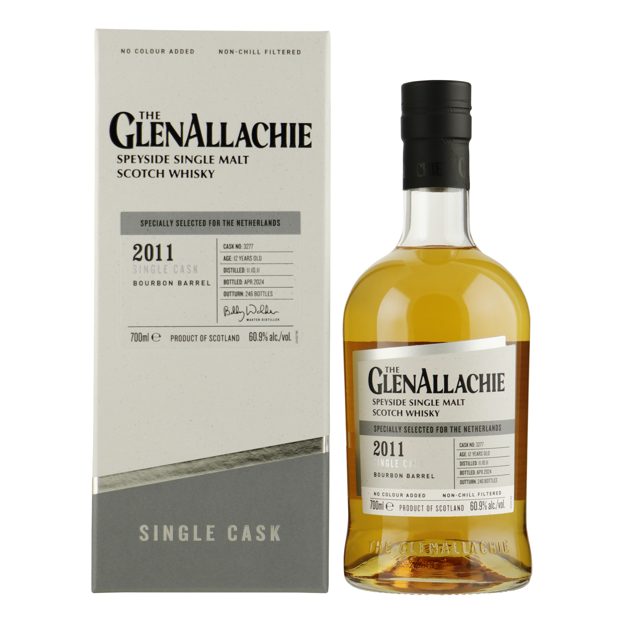 Dit bijzondere vat (3277) is, onder toeziend oog van whiskylegende Billy Walker, exclusief geselecteerd voor de Nederlandse markt. De whisky heeft gerijpt op een ex-bourbonvat, is 12 jaar oud en werd in april 2024 op een vatsterkte van 60,9% gebotteld. De opbrengst van het vat bestaat uit 218 flessen, waarbij de whisky vanzelfsprekend zijn natuurlijke kleur heeft behouden en er geen sprake is van koude filtratie.