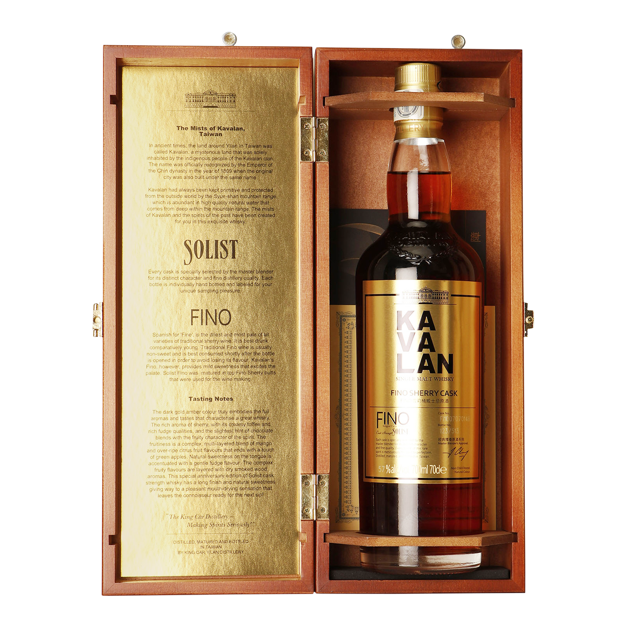 Kavalan is de nummer één whiskyproducent van Taiwan en de enige whiskystokerij in familiebezit. Kavalan ontleent zijn naam aan een oude stam uit de provincie Yilan, in het noordoosten van Taiwan, waar ook de distilleerderij zich bevindt. Het zuivere water en de frisse lucht maken dit deel van het subtropische eiland Taiwan tot de ideale omgeving voor de productie van whisky. De distilleerderij is bekroond met meer dan 270 gouden awards, 8x de wereld whisky winnaar van het jaar en 4x de Spirits Producers of the Year.