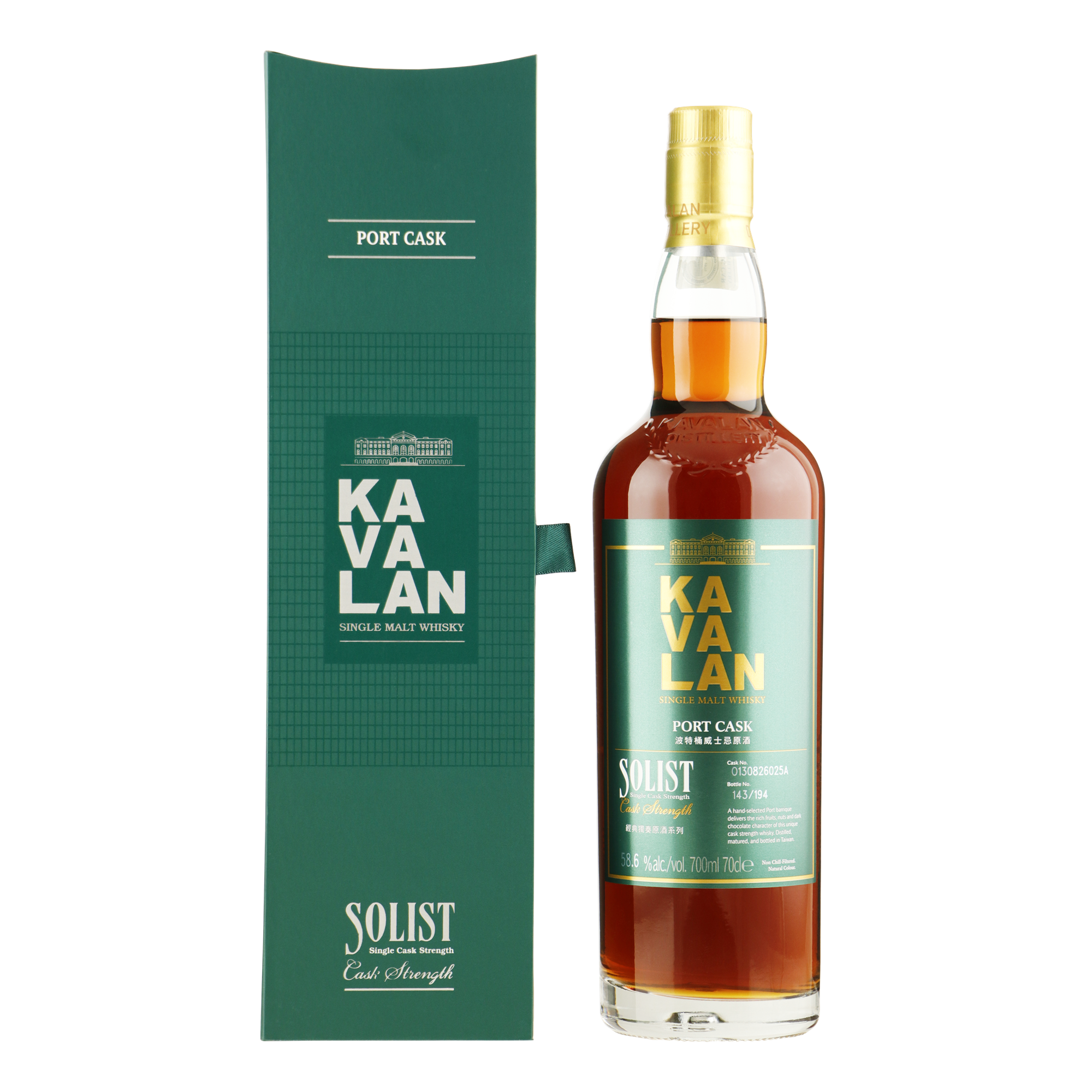 Kavalan Port Cask Solist behoort bij de speciale Solist serie uitgebracht door het Taiwanese Kavalan Deze Solist Port Cask botteling heeft een alcoholpercentage van 58,6% en heeft een diep robijne kleur. Door het rijpen op gebruikte portvaten heeft de whisky een fruitig en notig aroma met hinten van sinaasappel, citroen en eikenhout gekregen.