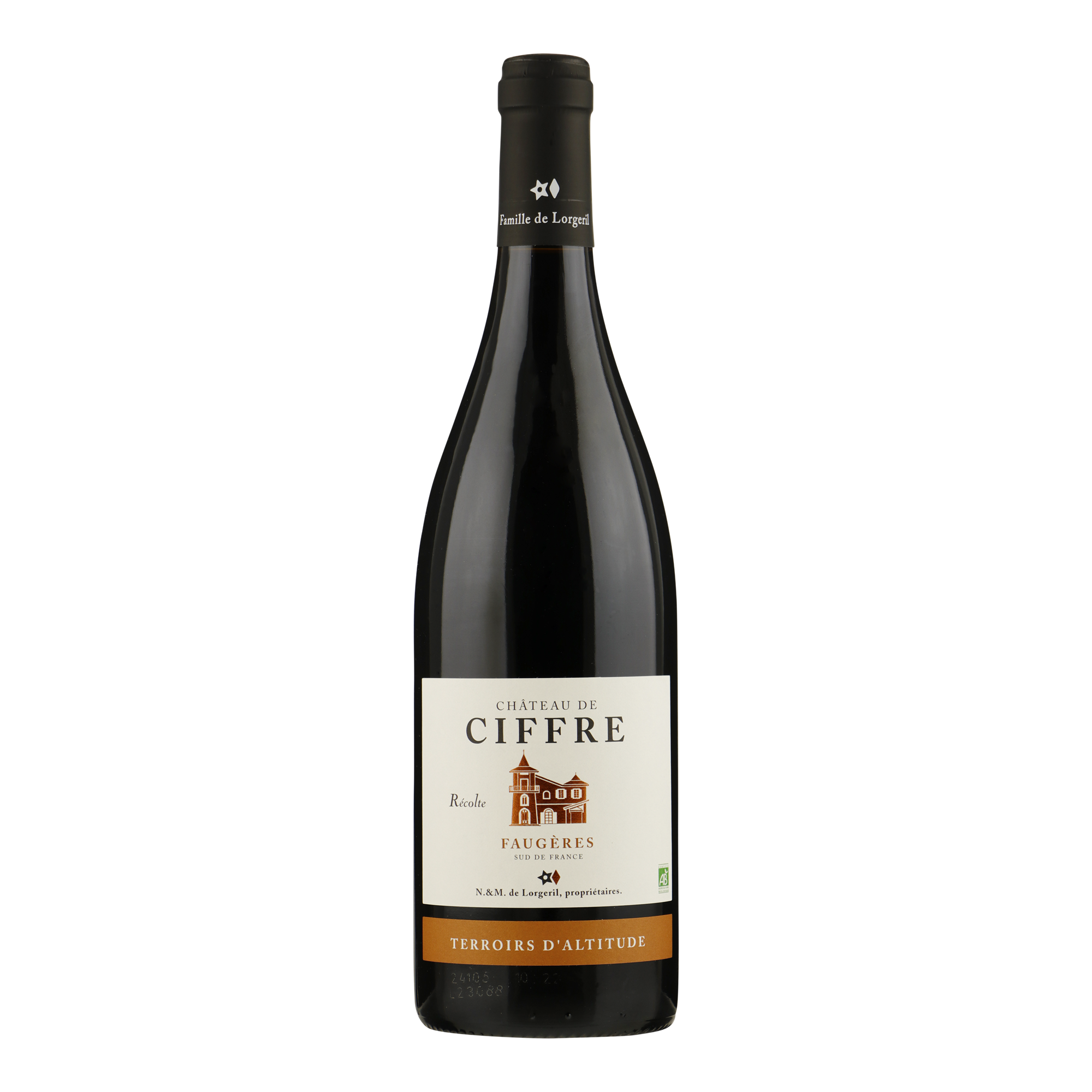 Temidden van de natuur die imponeert met zijn woeste schoonheid, aan de voet van de Mont Carou, op zo’n 25 km boven Pezenas, ligt het wijngoed van Château de Ciffre. De ligging is bijzonder: op de grens tussen de appellations Faugères en Saint-Chinian. Hoewel aansluitend zijn de bodems heel verschillend, een beekje dwars door de wijngaard vormt de grens tussen beide terroirs. In Saint-Chinian zijn het vooral kalkbodems, in Faugères schist.