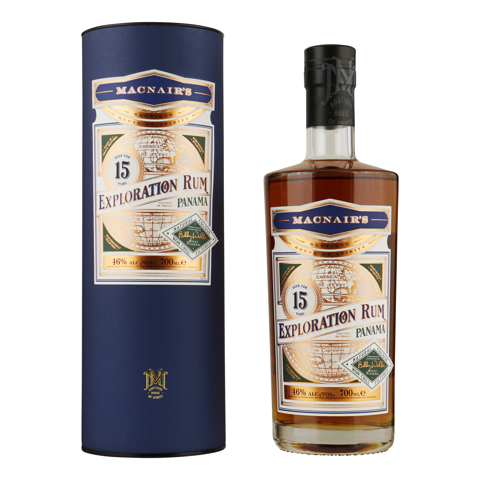 Na ongeveer 4 jaar ontwikkelen en experimenteren maakt MacNair’s Exploration Rum zijn debuut. De eerste drie varianten zijn rechtstreeks afkomstig uit Panama en vervolgens geblend door Billy Walker op ‘zijn’ The GlenAllachie Distillery. De vulkanische bodem van Panama is de ideale groeiomgeving voor het belangrijkste ingrediënt van rum: suikerriet. Dit was de reden waarom GlenAllachie's Master Blender op zoek ging naar de beste rum die het land te bieden heeft. Deze Panamese rum serie heeft een tropische en Schotse rijping ondergaan, inclusief de secundaire rijping bij GlenAllachie in de Speyside.