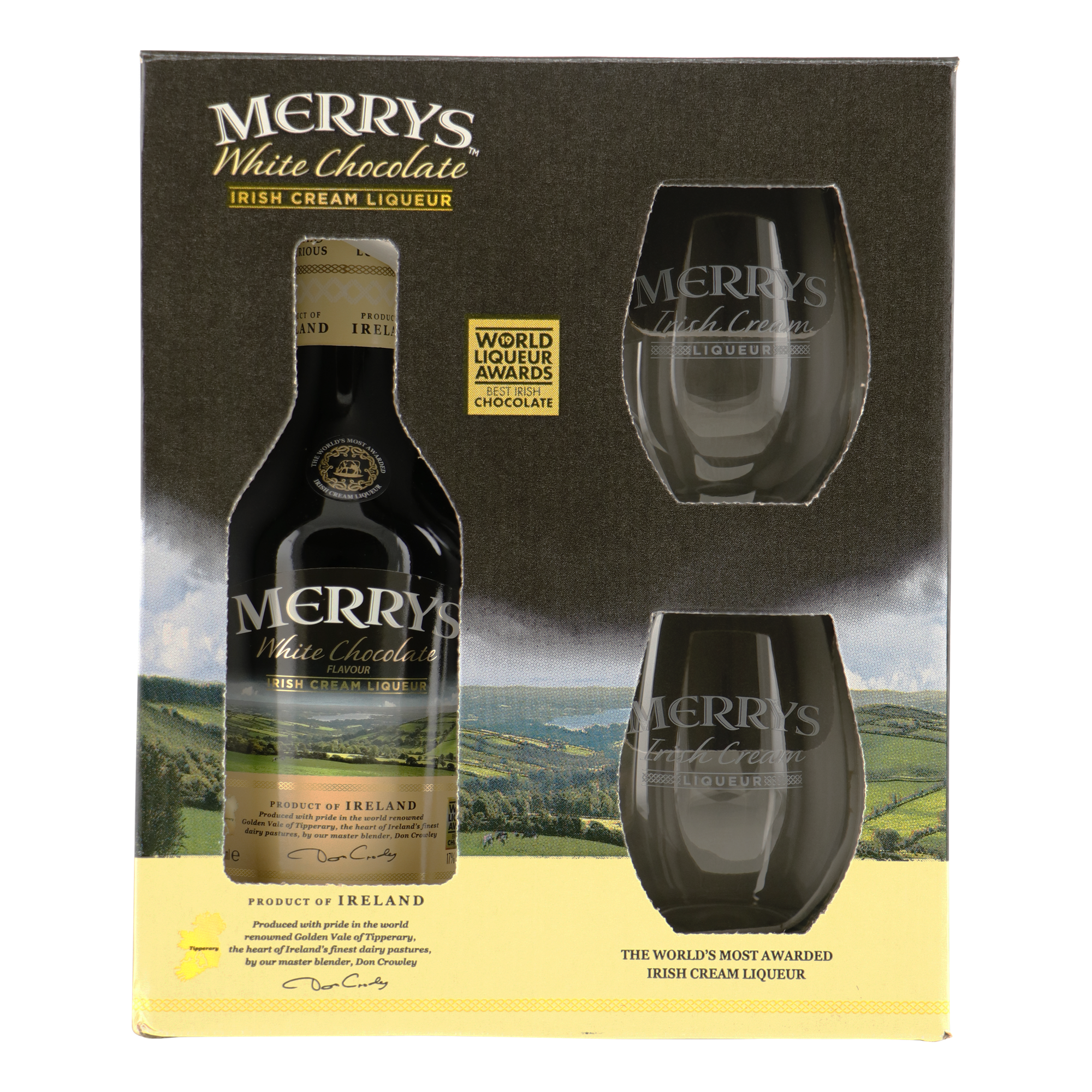 Merrys is de zachte, lichte chocolade likeur van witte chocolade met Ierse whiskey en verse room. Merrys White Chocolate wordt sinds 1994 bereid door Robert A. Merry & Co in Clonnel, in de Ierse regio Tipperary. Door de ambachtelijke bereiding met verse room en in kleine productieruns, garandeert Merrys de optimale versheid en smaak van het product. De selectie van de beste Ierse whiskey en verse room, verfijnde witte chocolade en vanille geven Merrys de mooie smaak-balans; niet te zwaar, niet te dik, niet te zoet, maar gewoon erg lekker!