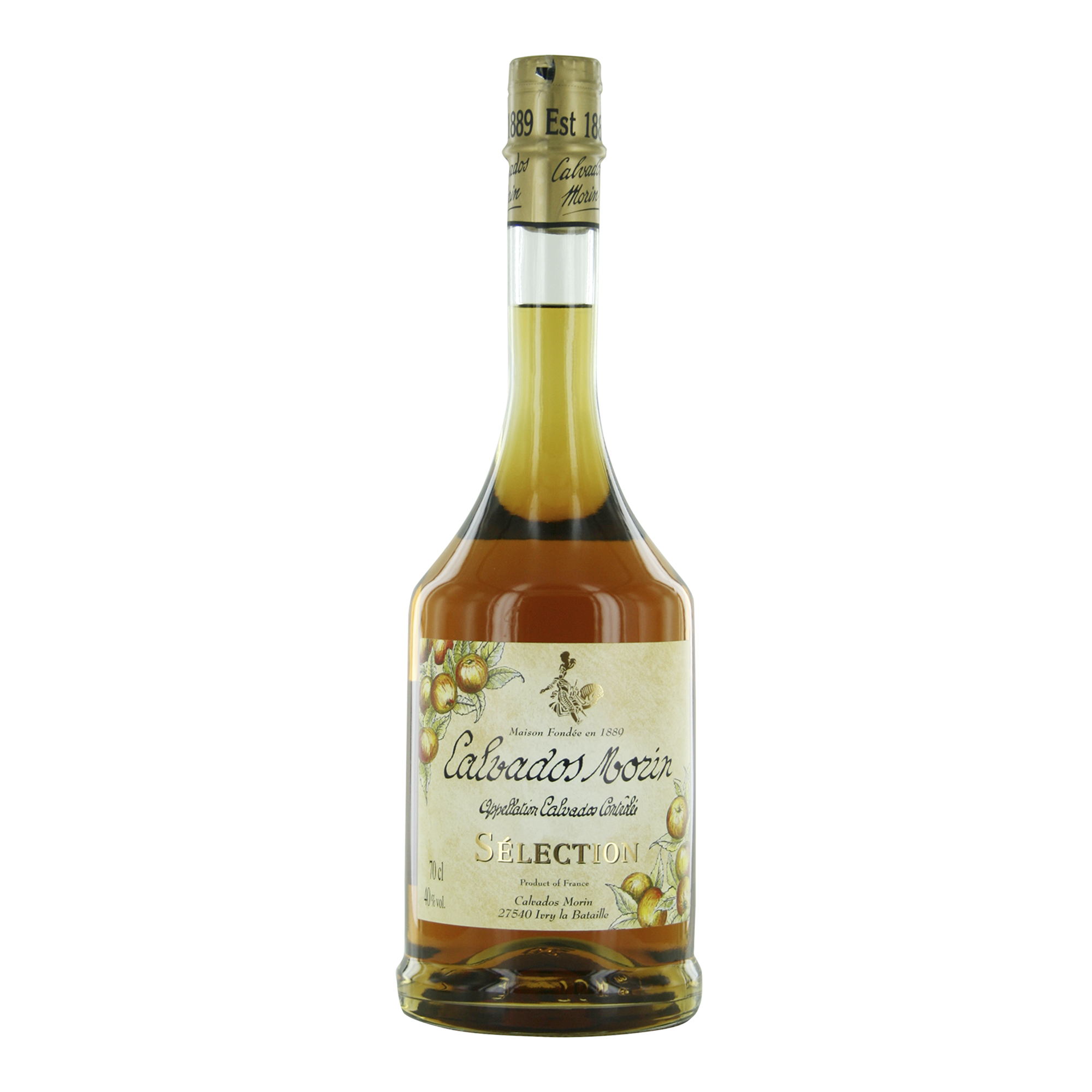 Calvados Morin werd opgericht in 1889, en is gevestigd in Ivry-la-Bataille, Normandië, zo'n 80 km ten westen van Parijs. Het familie bedrijf Morin is beroemd om de productie van hun top kwalitiet calvados.De eerste rijping van het appeldistillaat heeft bovengronds plaats in kleine Limousin eiken vaten; de rijping van de jonge calvados wordt hier door gestimuleerd. De tweede rijping na zo'n 5 jaar heeft verder plaats in de ondergrondse kelders; bij de hoge vochtigheid en lage, constante temperatuur ontwikkelt zich een perfecte balans en krijgt het zijn elegante karakter.