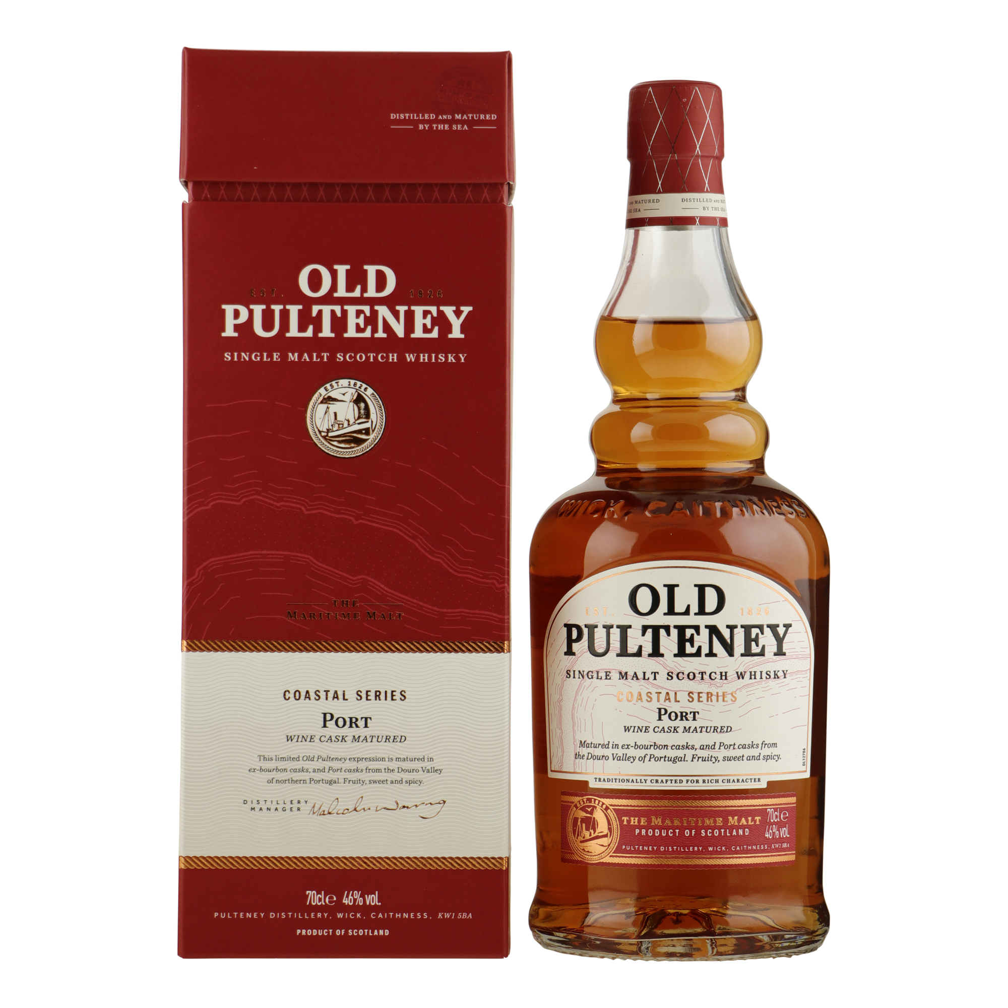 De 2e batch van de Old Pulteney Coastal Series heeft een finish ondergaan op zowel Ruby Port Pipes als Ruby Port Barriques. Deze vaten waren in het verleden gevuld met de beroemde zoete rode versterkte wijnen uit de Douro-vallei in het noorden van Portugal.
