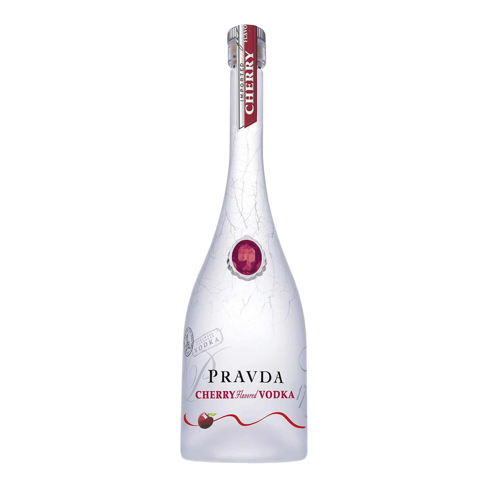 Pravda vodka komt in verschillende soorten en smaken. Voor Pravda Cherry Vodka worden zwarte kersen uit Zwitserland gedistilleerd met Pravda om de natuurlijke rijpe smaak van de kersen te verkrijgen.