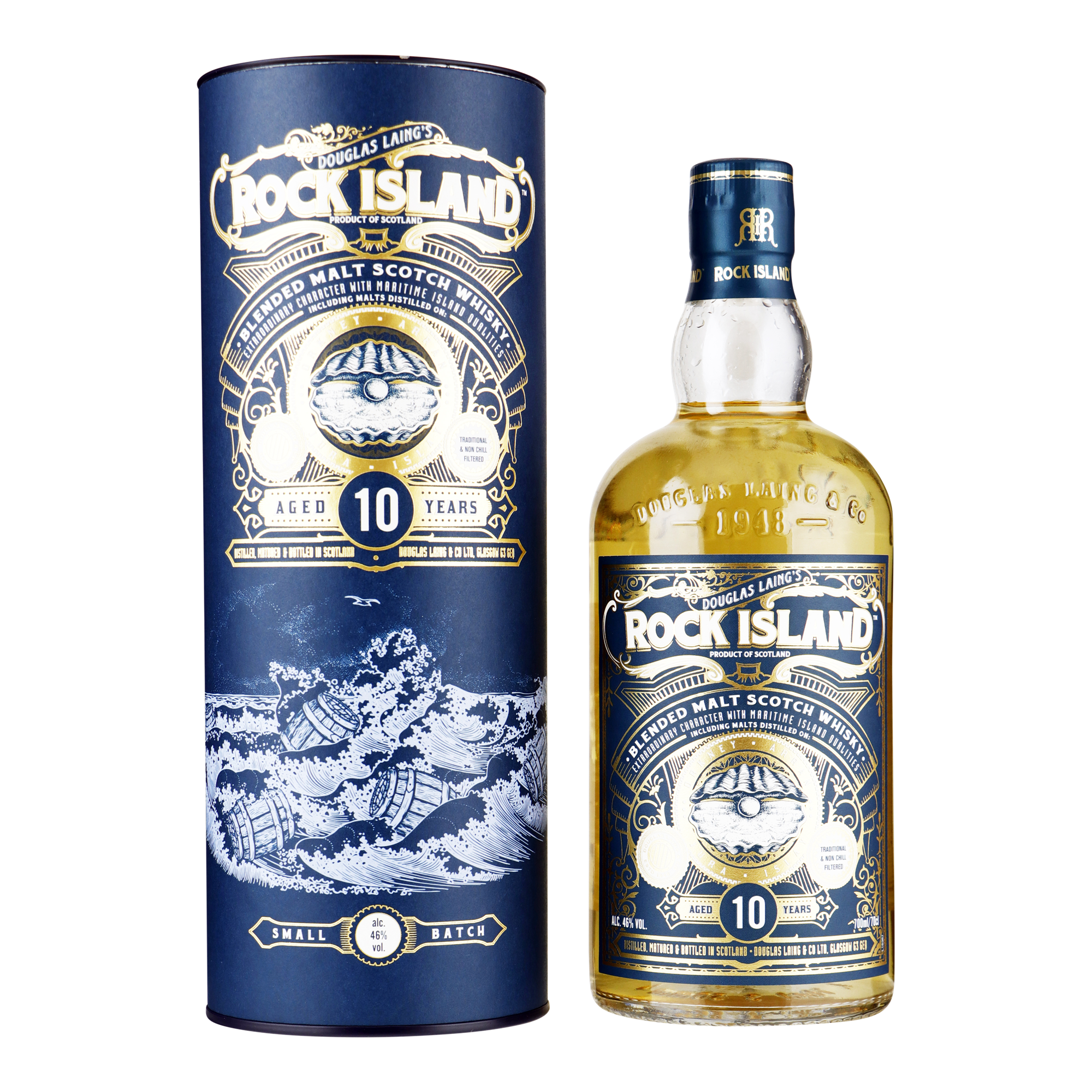 Rock Island 10YO is een waar eerbetoon aan de zee. Deze kleine partij is gecreëerd met de fijnste malts, gedistilleerd op de eilanden: Jura, Islay, Arran en Orkney.