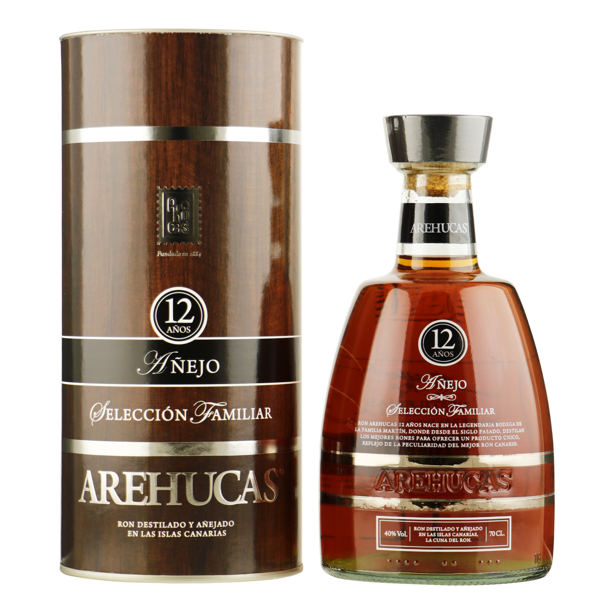 Bij Arehucas hebben ze eeuwenlang kennis vergaart over het maken van de beste rum. Deze 12 jaar oude Ron Anejo Seleccion Familiar is een premium rum afkomstig van het Spaanse eiland Gran Canaria. De rum kenmerkt zich door een prachtige mahonie kleur met gouden reflecties. De smaak, waarin bloemige en fruitige tonen worden afgewisseld, is van hoogstaande kwaliteit. Het fruitige aspect komt tot uiting met een sensatie van rijp fruit en gekonfijte peer. Spaanse rum, waaronder deze rum toebehoort, heeft veel uiteenlopende smaken, maar is wat lichter en toegankelijker dan de Engelse stijl. Over het algemeen hebben deze rums meer lagen in de smaak met wat zoetige tonen. Naast deze Spaanse stijl 12YO, zijn ook de 7YO en 18YO unieke rums waarin de Spaanse stijl de overhand neemt.