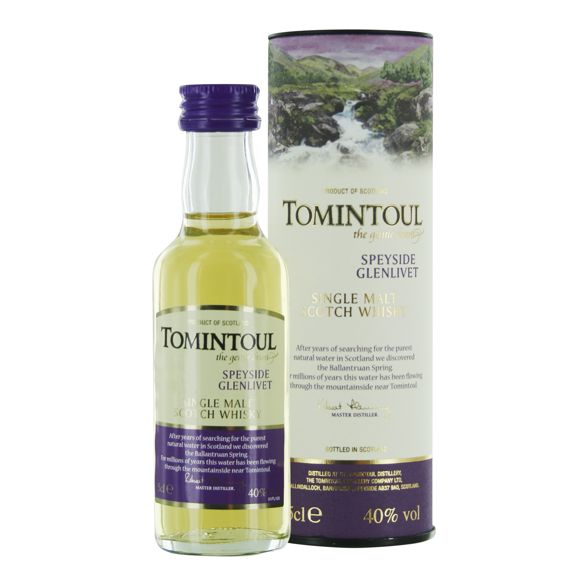 In het midden van de vorige eeuw duurde het meer dan een jaar om een waterbron te vinden die benut zou kunnen worden om malt whisky te produceren. De zoektocht eindigde met de ontdekking van de Ballantruan Spring, een bijzondere bron met het zuiverste water, genesteld in de Cromdale Hills. Vlakbij, aan de majestueuze Avon River, werd vervolgens de Tomintoul Distillery gebouwd. De natuurlijke omgeving, de hoge ligging, de zuivere lucht en de hoge kwaliteit water uit de Ballantruan Spring dragen bij aan de uitzonderlijke kwaliteit van Tomintoul Speyside Glenlivet single malt: "the gentle dram". Angus Dundee Distillers, de eigenaar van de Tomintoul Distillery, bracht samen met een team van goed opgeleide medewerkers de distilleerderij tot bloei.